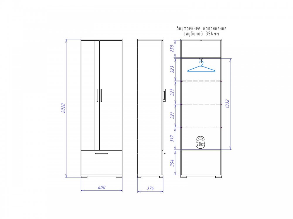 - Шкаф Д-2 для одежды Денвер Риббек серый