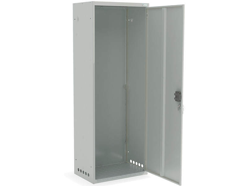 Шкафы серии ШГР изготавливаются из высококачественной конструкционной холоднокатаной стали. Металлический шкаф состоит из сборно-разборного корпуса и одной распашной двери. Корпус состоит из основания, усиленного оцинкованным настилом, крыши, двух боковых стенок и одной задней стенки. Сборка корпуса осуществляется на винтах и саморезах. Дополнительную жесткость основанию придает приварное ребро жесткости.