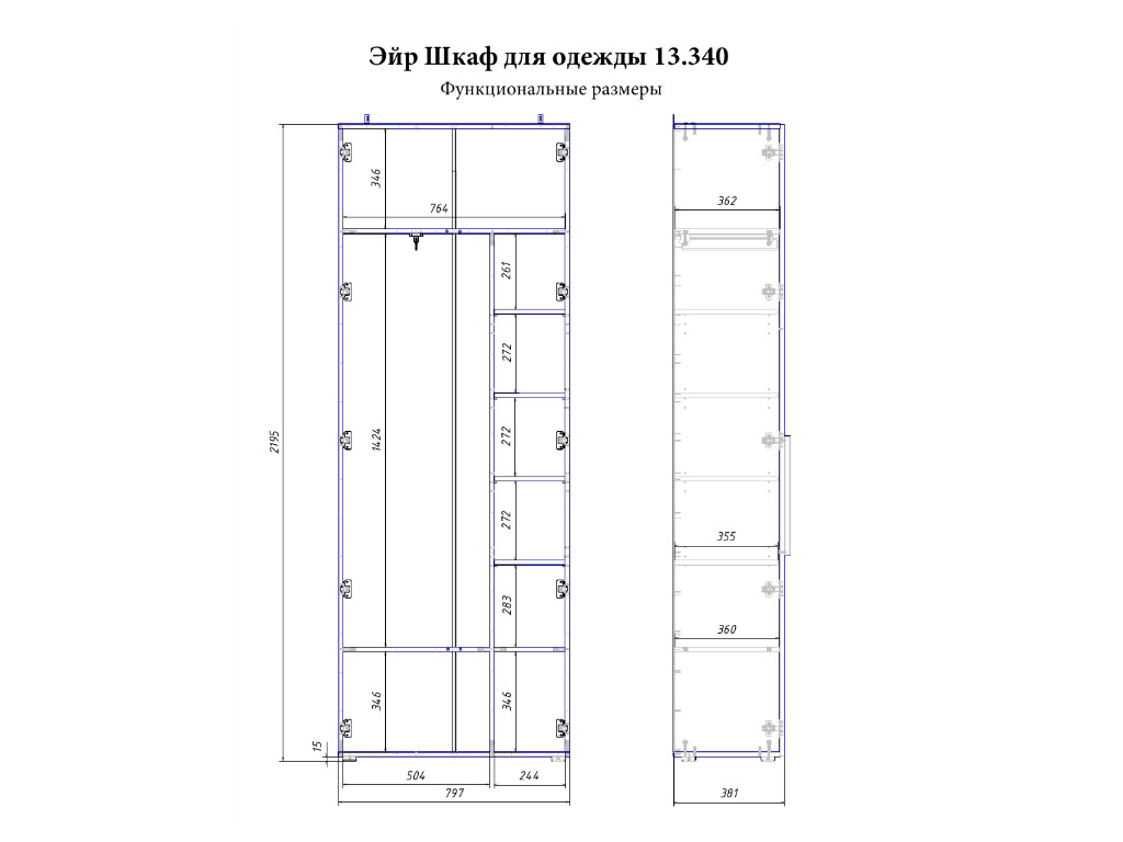 Размер ШхГхВ: 797 x 381, В 2195 мм