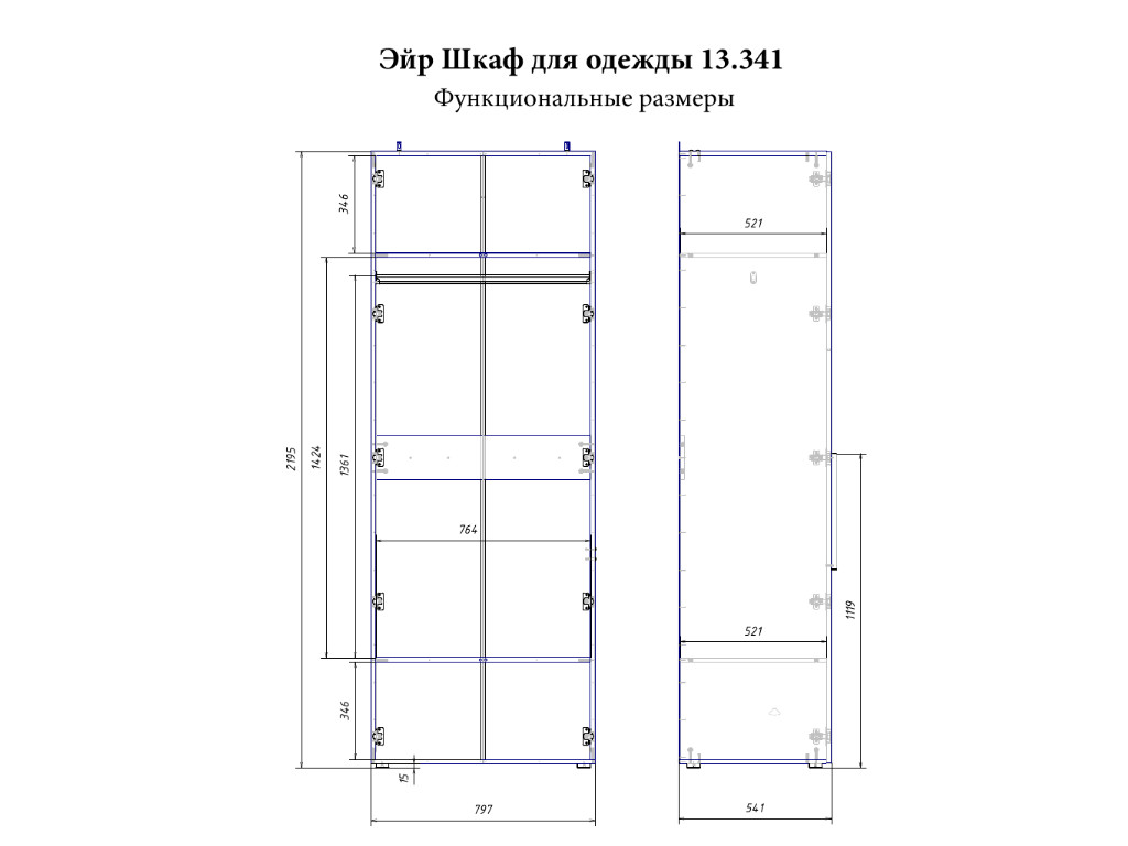 Размер ШхГхВ: 797 x 541, В 2195 мм