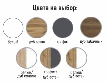 - Корпус: дуб вотан, белый, дуб сонома, дуб табачный, графит.