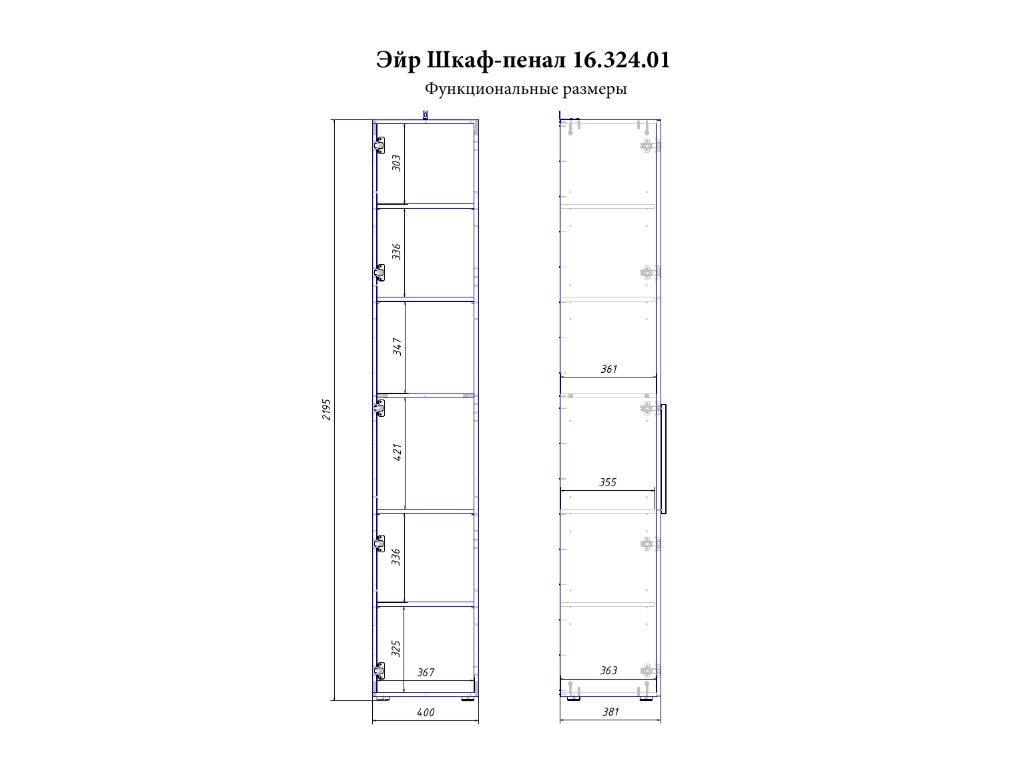 - Шкаф-пенал 16.324.01 400 x 381, В 2195 мм ( 38,80 кг; 0,079 м3)