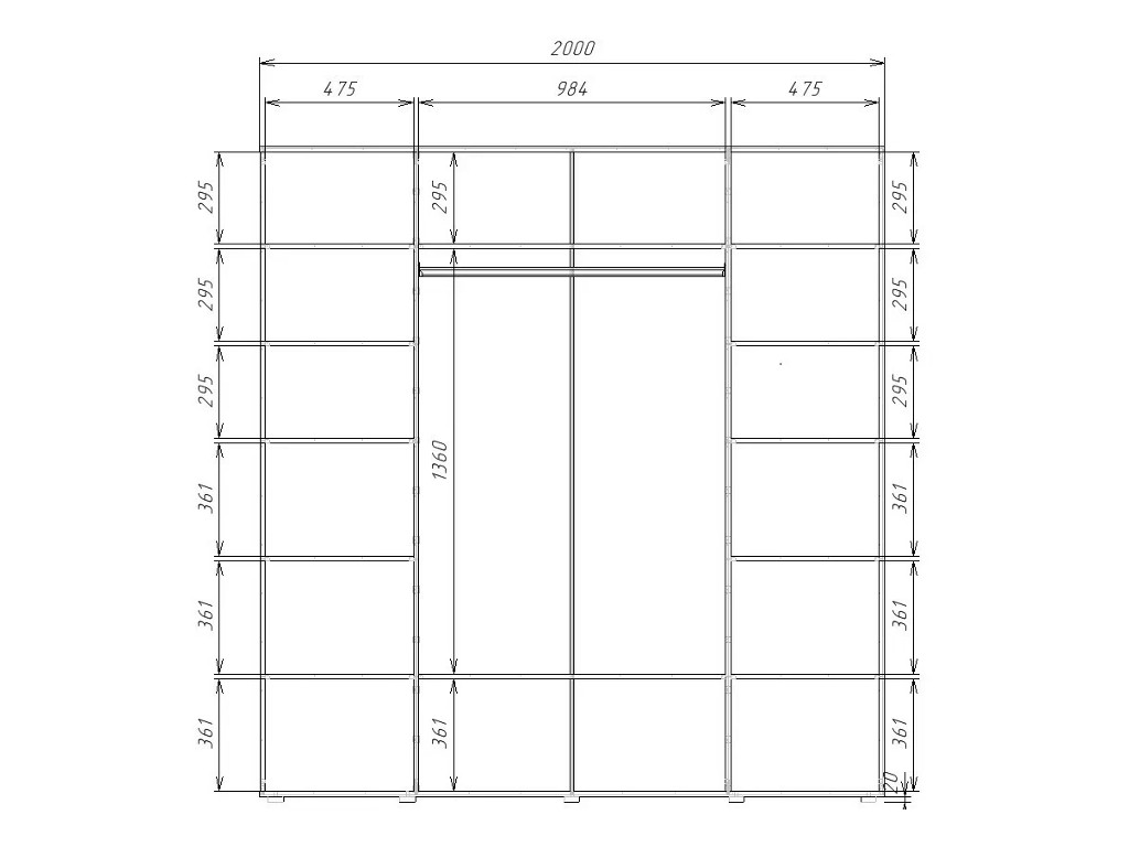 - Шкаф Гранд ГШК/1-21-20-2222 (двери тип 2) с четырьмя зеркалами