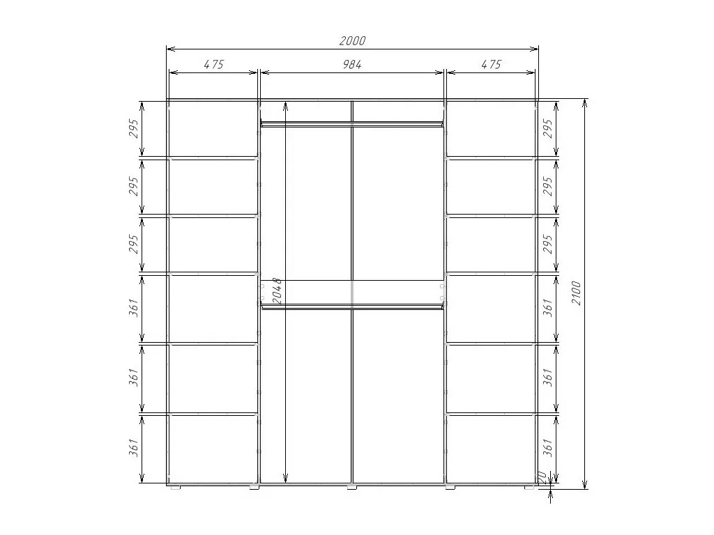 - Шкаф Гранд ГШК/2-21-20-2222 (двери тип 2) с двумя зеркалами