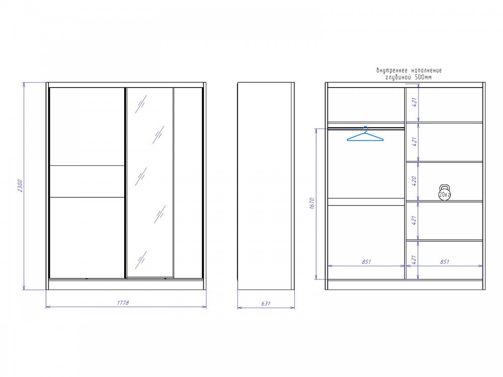 - Шкаф-купе 2-х дверный NEW 2300 Денвер Риббек серый