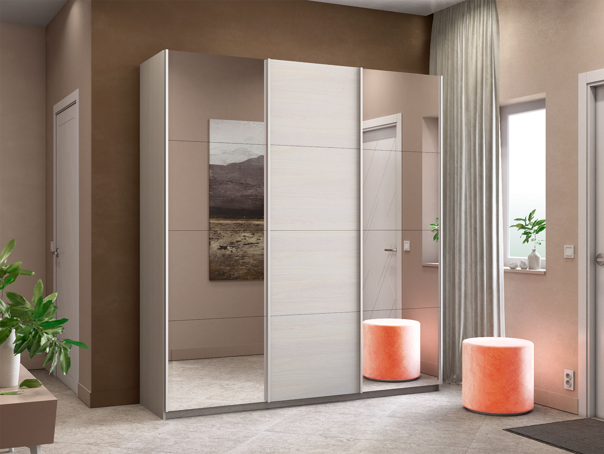 Шкаф-купе Прайм Широкий 3-х дверный два зеркала/ДСП Ясень Анкор Светлый