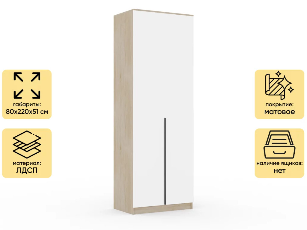 Шкаф Монблан New распашной 800 2-х дверный Дуб сонома-Белый