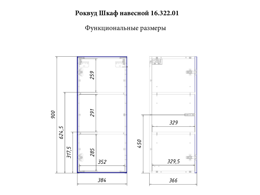 Размер ШхГхВ: 384 x 366, В 900 мм