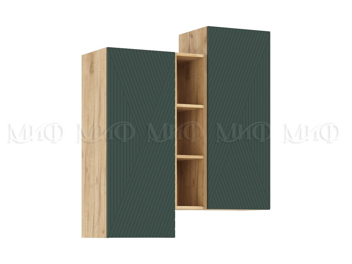 - Шкаф подвесной комбинированный Флэш Браш Мени Грин, Дуб Крафт