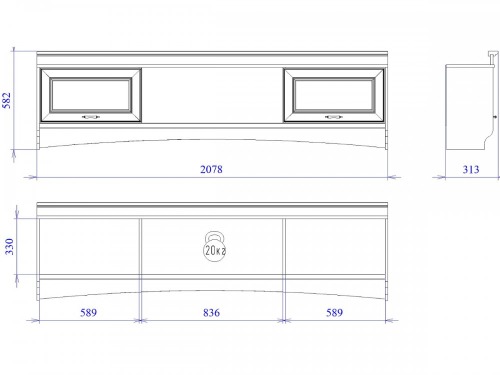 Допустимая нагрузка на шкаф-полку навесную не более 20 кг