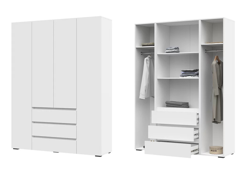 Шкаф с ящиками Хелен 4-х створчатый ШК 05 Белый шагрень