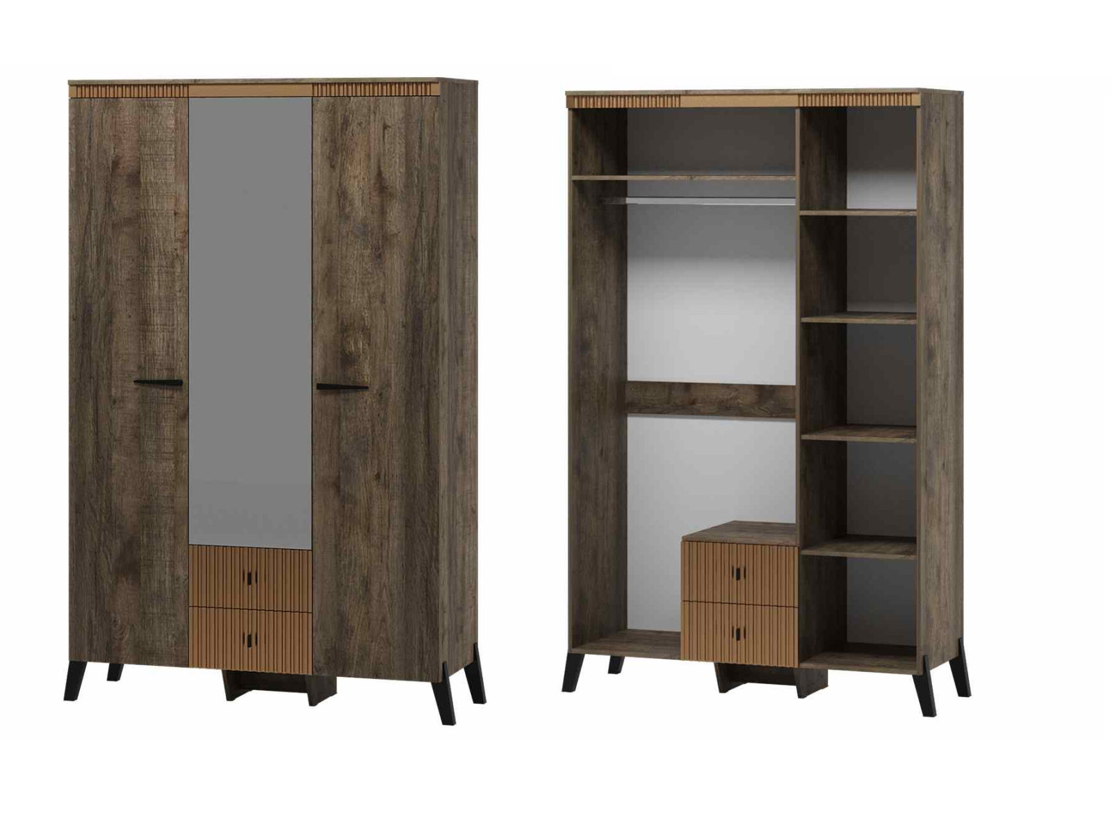 - Шкаф трехдверный с ножками Ольга 3 дуб коми