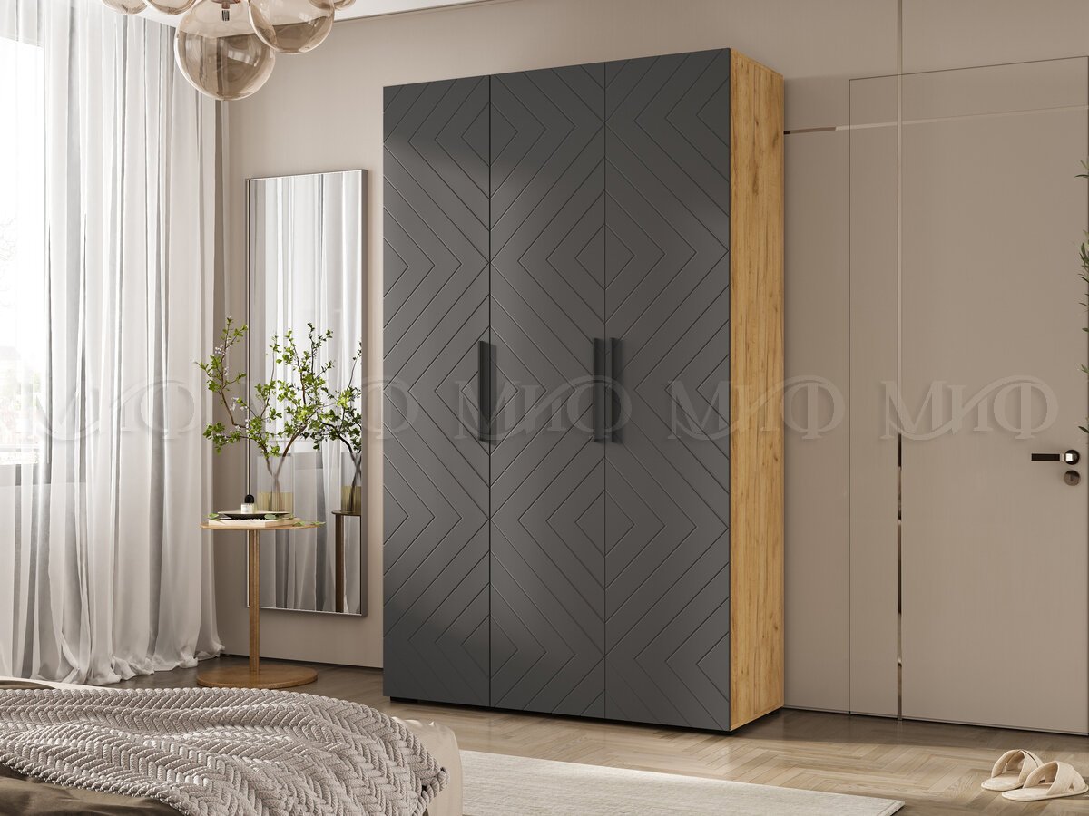 - Шкаф трехстворчатый (1350) Флэш Браш Графит, Дуб Крафт