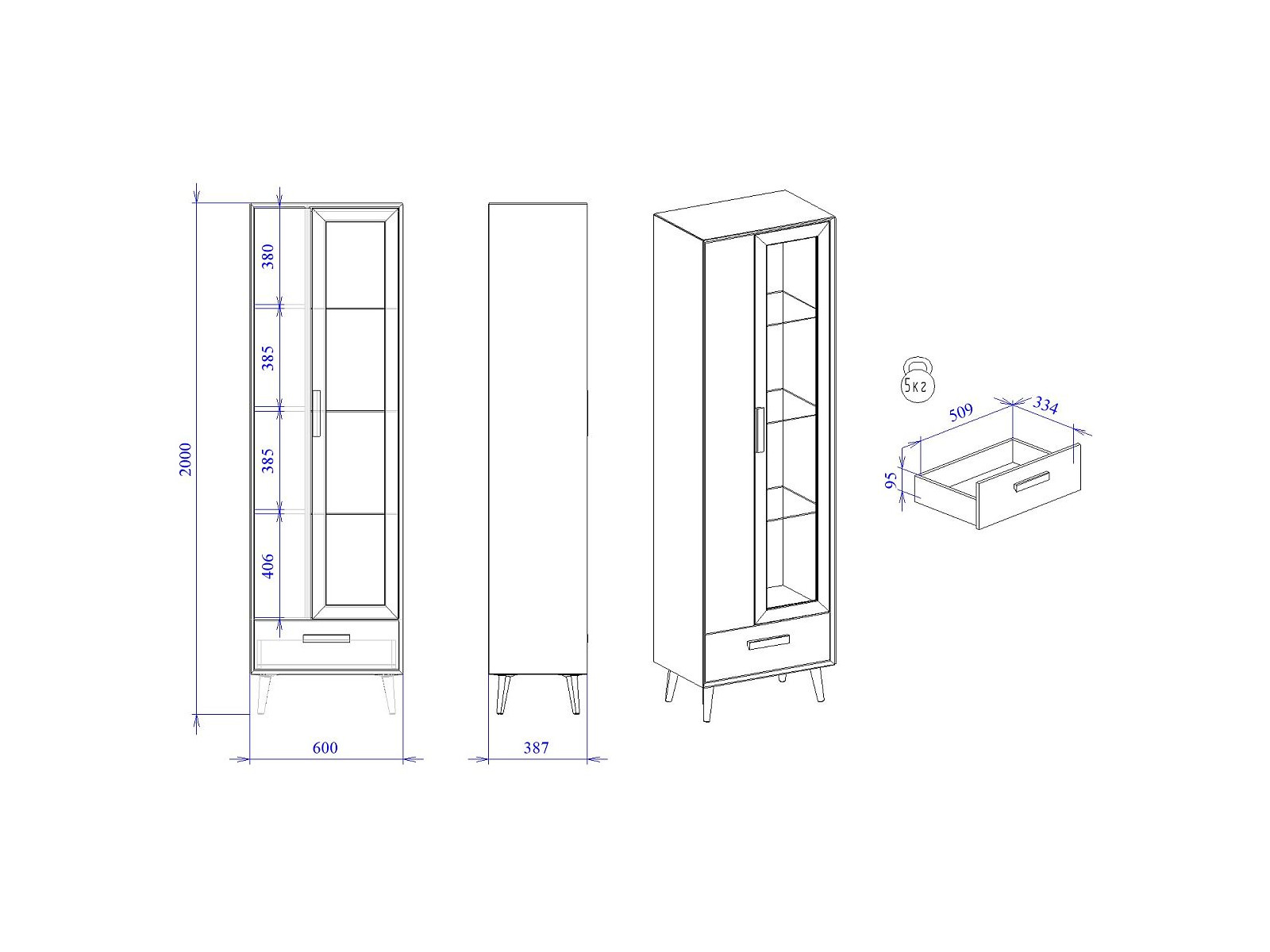 - Высота (мм) 2000