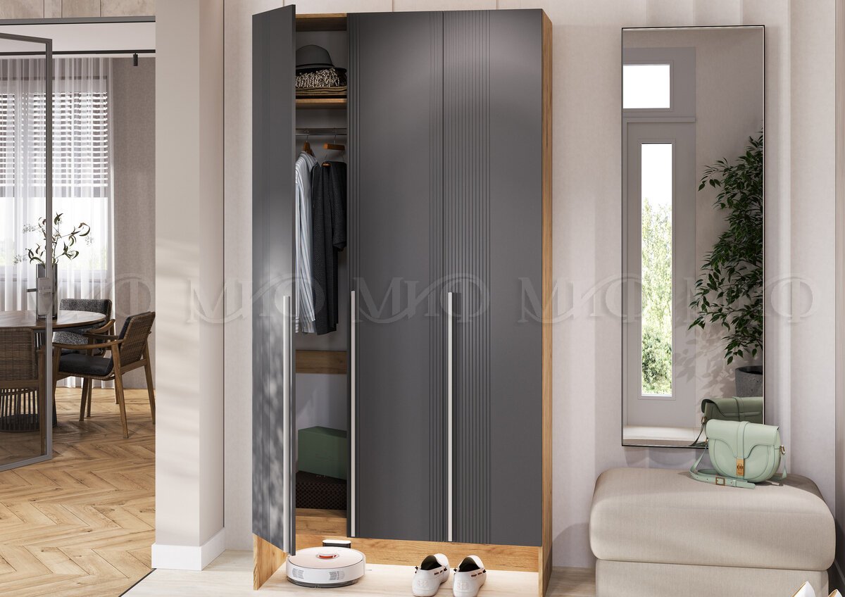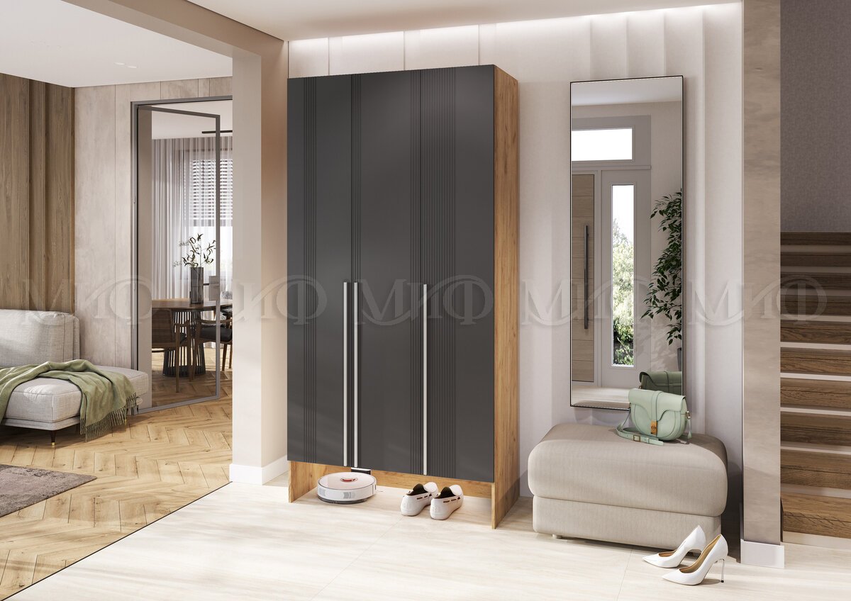 - Прихожая Луна шкаф 3-х створчатый Графит, Дуб Крафт