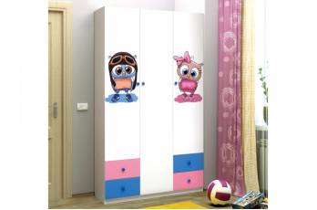 Шкаф трехдверный с ящиками и фотопечатью Совята 3.1