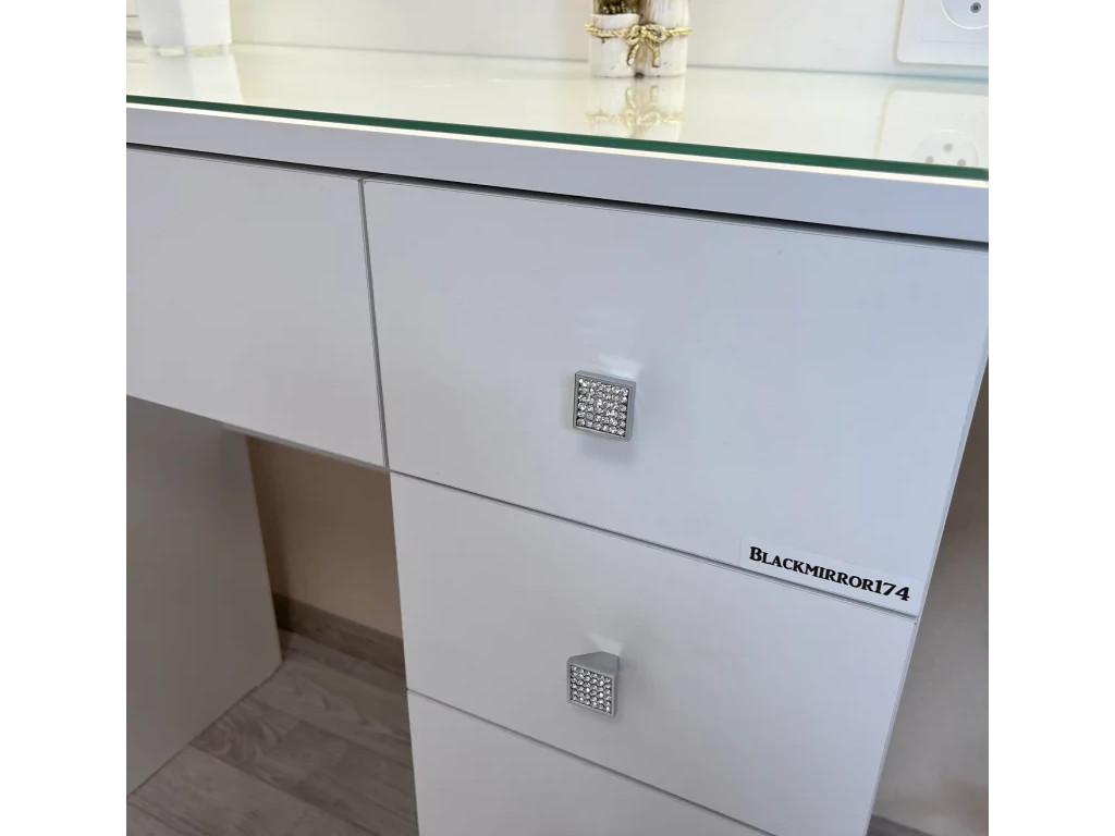 - Ручки железные, хромированные с кристаллами в форме кнопки.