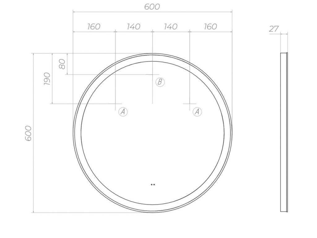 Подсветка фронтальная по периметру, с цветовой температурой 5000К – нейтральный белый, управление подсветкой бесконтактный выключатель «на взмах»